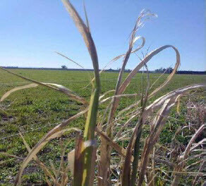 Fig.3: Leaf growth from the top of previously-senesced stems; paddock 22, Aylesbury Farm, Oct 7, 2013.